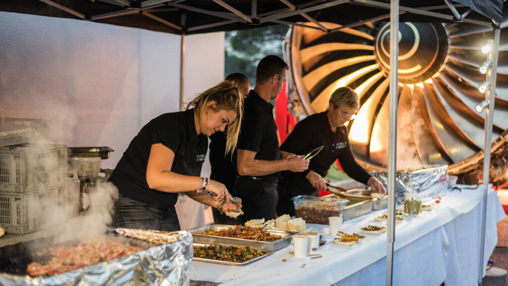 Quand le jeu s’appelle Flight Simulator et que l’Aerocampus existe à 20 minutes de Bordeaux ; un site aéronautique de formation avec de vrais avions, de vrais hangars, un vrai tarmac, la question du lieu se pose à peine. Ce qui se pose, en revanche, c’est la négociation de la privatisation, la logistique d’un événement en extérieur sur un site actif, et la coordination entre activités, restauration et soirée sur un espace non conventionnel.