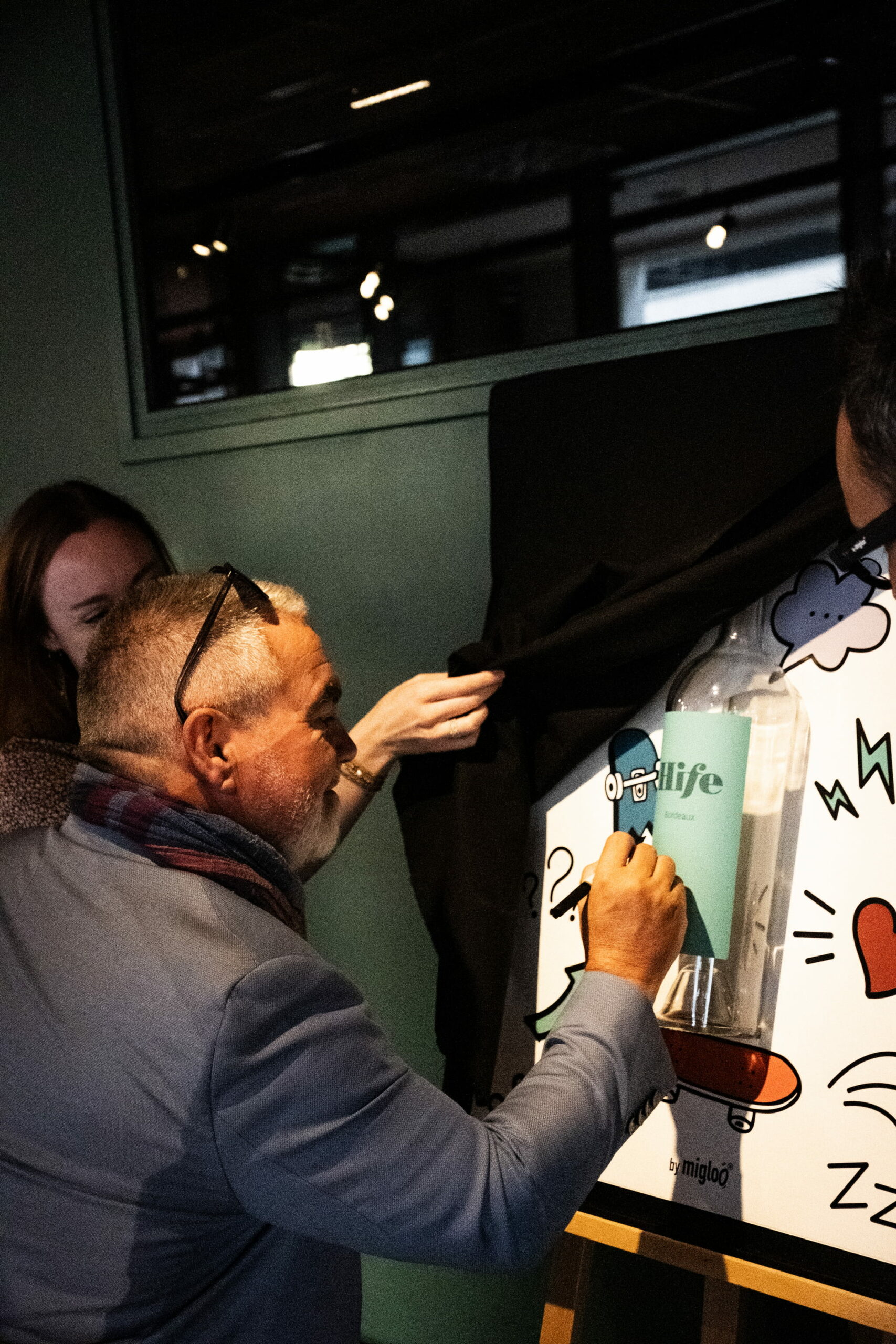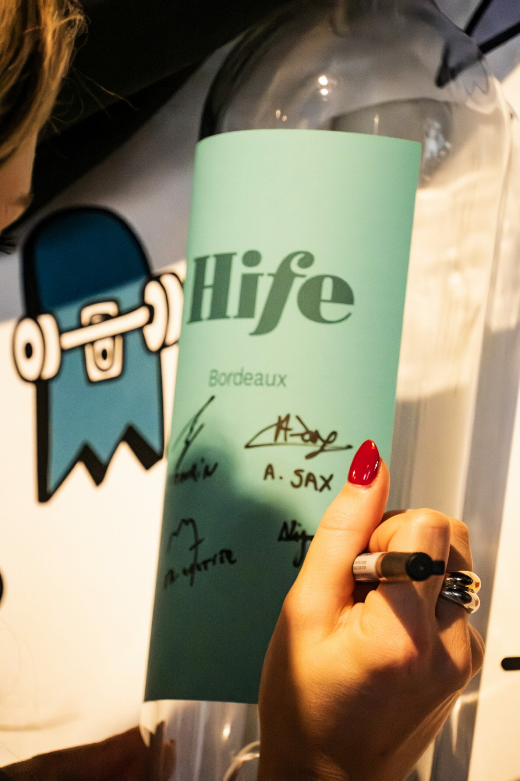 L’artiste bordelais Migloo a créé un tableau spécialement pour l’inauguration,offert au lieu, pensé pour lui. Un acte fondateur : l’œuvre d’art qui marque l’entrée dans l’existence, la signature visuelle qui restera quand les invités seront partis. Le tout animé par une vidéo-mapping immersive et créative.