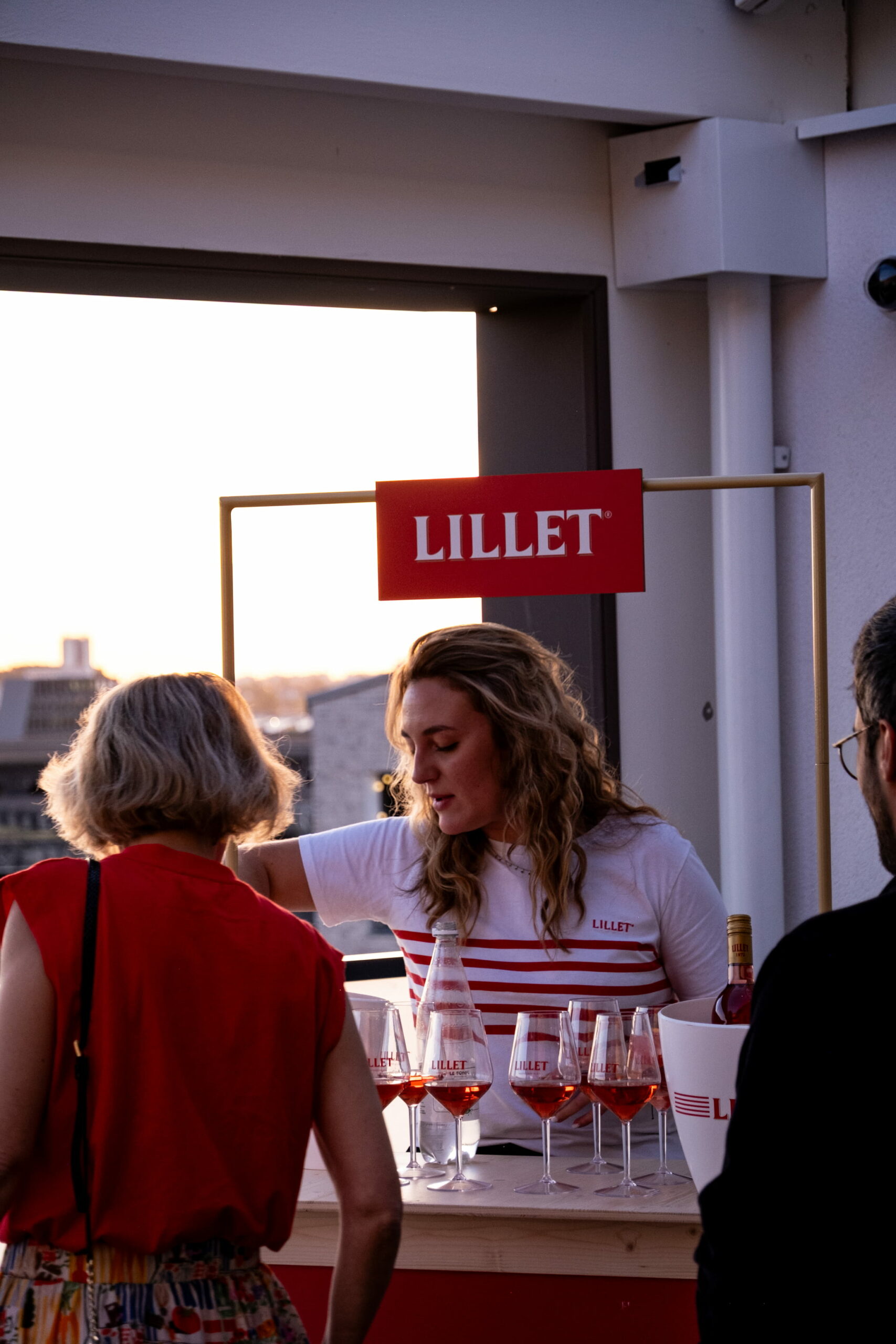 Le stand Lillet sur le rooftop avec vue sur Bordeaux, c’est le moment où les invités comprennent vraiment dans quel lieu ils se trouvent. La ville entière comme argument de vente.