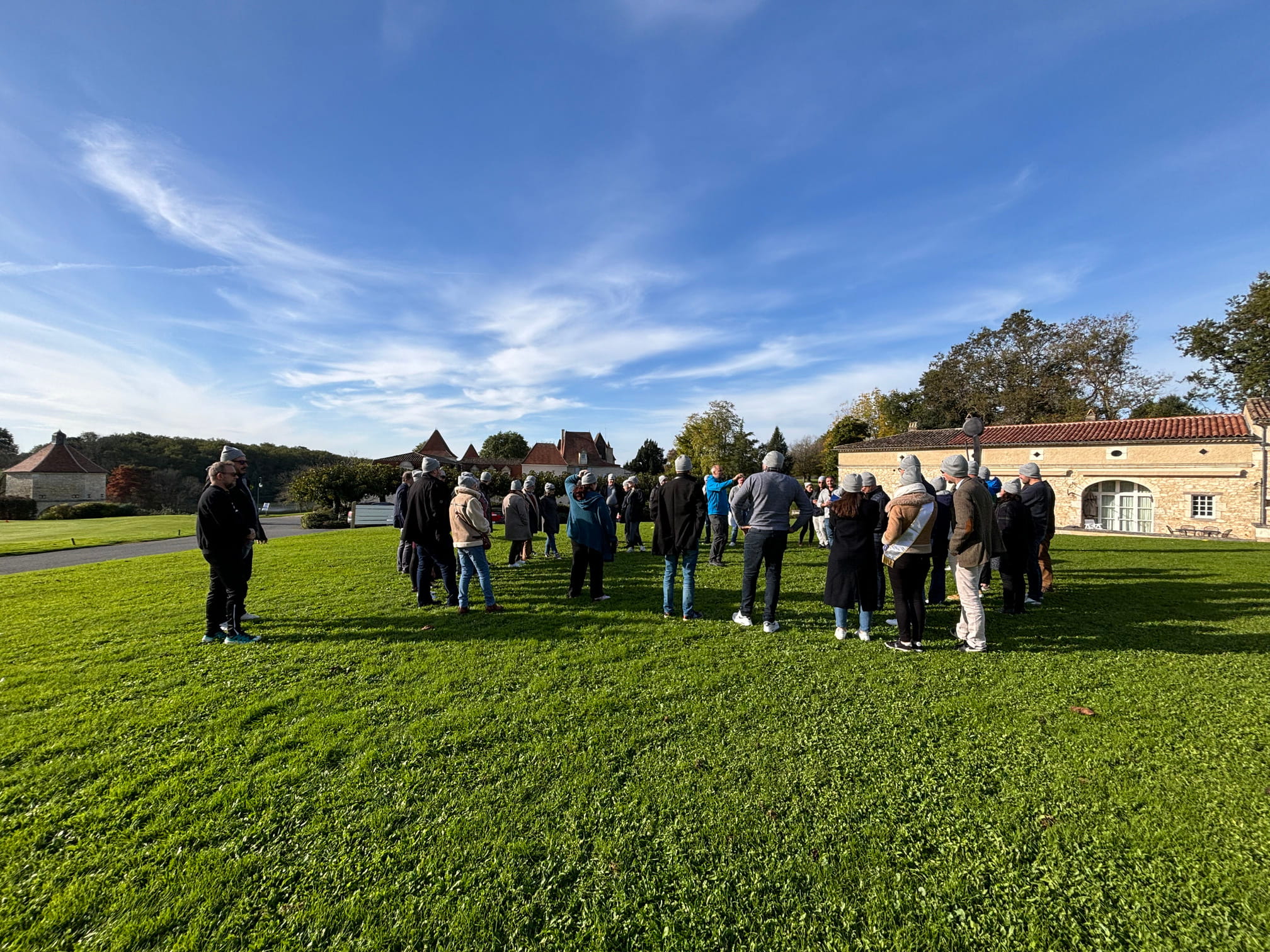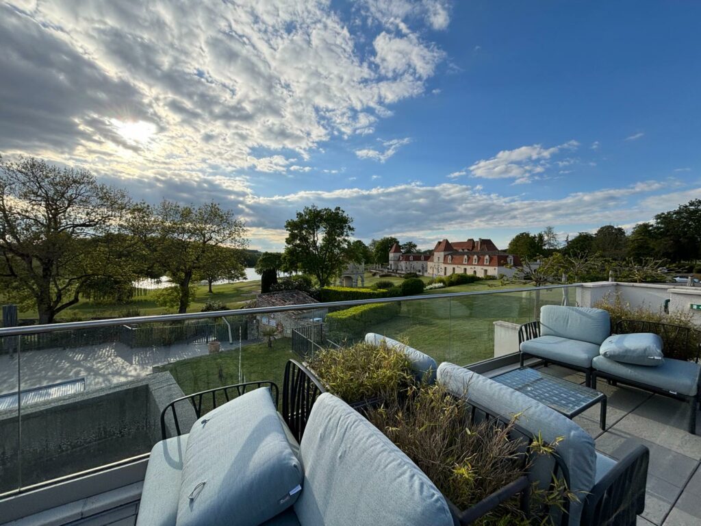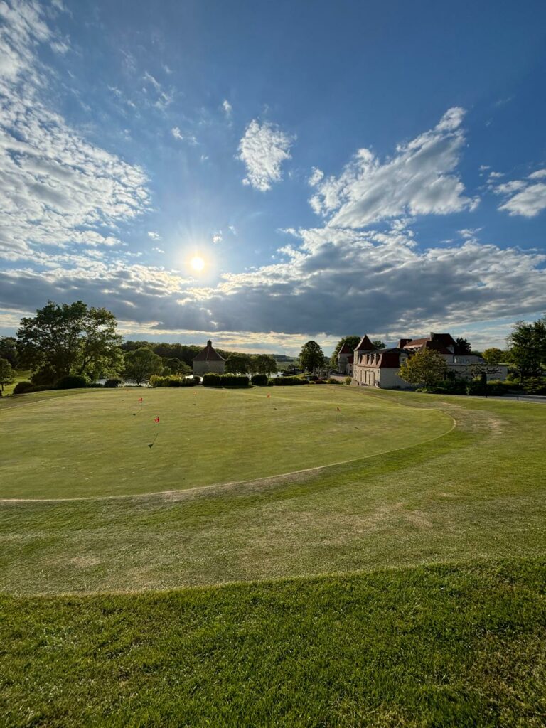 Un domaine entièrement privatisé ; le château, les espaces de réception, le golf. Le cadre qui fait l’effet immédiat : les épaules descendent, les téléphones disparaissent, les conversations changent de nature. Quand le lieu est aussi beau que ça, il fait la moitié du travail de cohésion à lui seul.